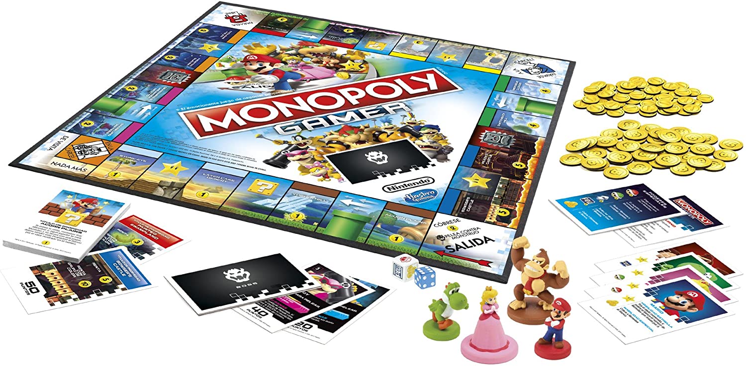 Monopoly y Nintendo se unen para darte la versión Monopoly Gamer la cual cuenta con personajes de Super Mario. En esta versión única podrás comprar propiedades, pagar alquiler y recolectar monedas para ser el ganador. El juego termina cuando Bowser haya sido derrotado. El jugador con la puntuación más alta gana.