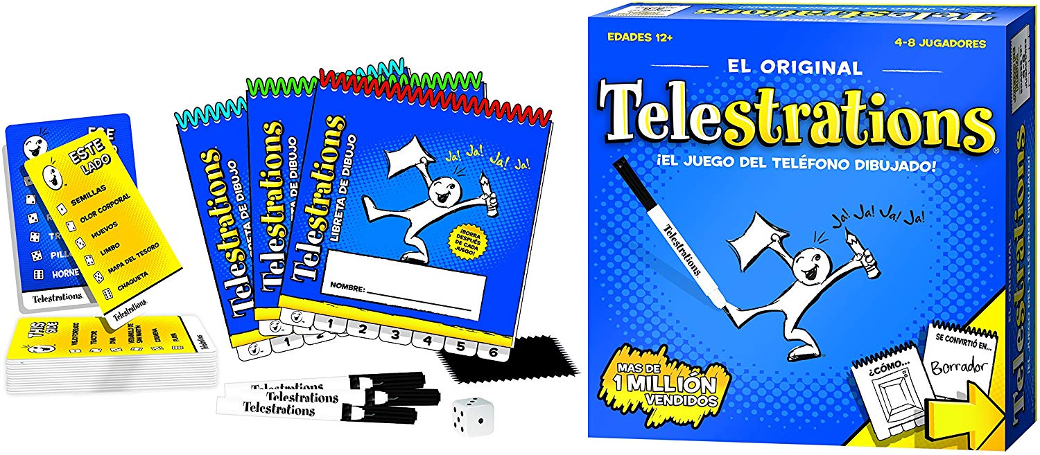 Mismo laugh-out-loud galardonado, pase y Guess fiesta juego divertido donde los jugadores simultáneamente dibujar lo que ve, entonces Guess lo que saw para revelar divertido e impredecible resultados; pero ahora los resultados puede ir aún más lateral con hasta 12 jugadores y libros en Play. Casual, familia, fiesta y estrategia jugadores nos Telestrations es el mejor nueva adición a su colección de juegos, y juego de la noche. Es un juego que puede ser jugado una y otra con muchos diferentes tipos de grupos de edades y cautivador